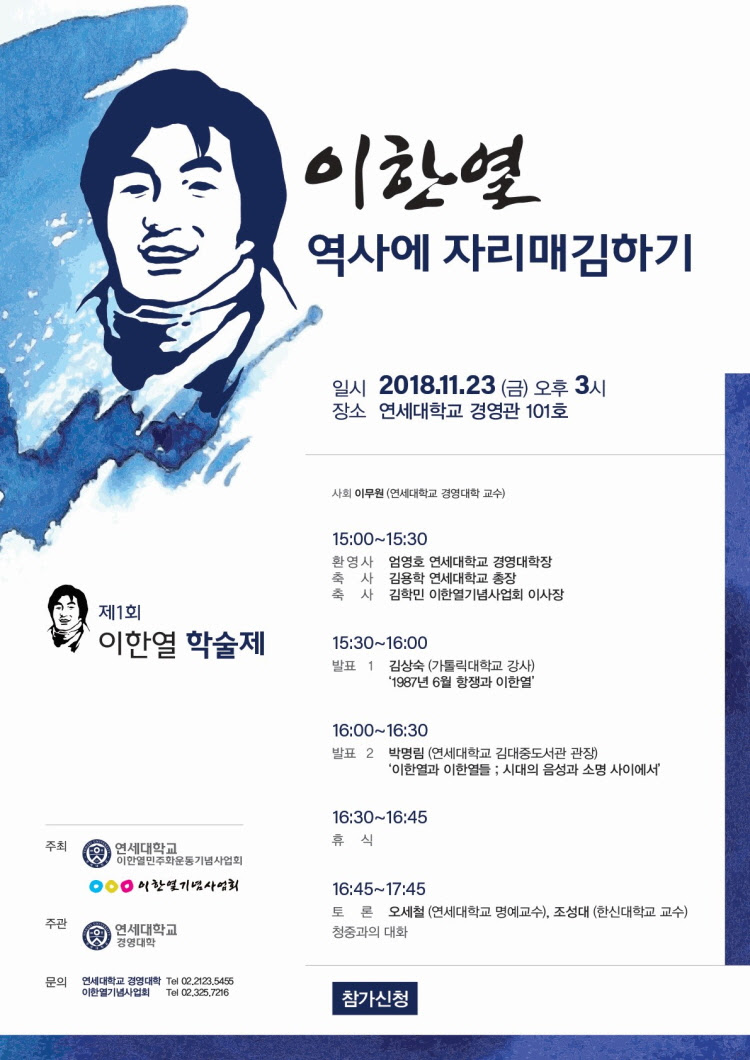 제1회 이한열 학술제, 11월 23일 오후 3시 모교 경영관 101호에서 개최