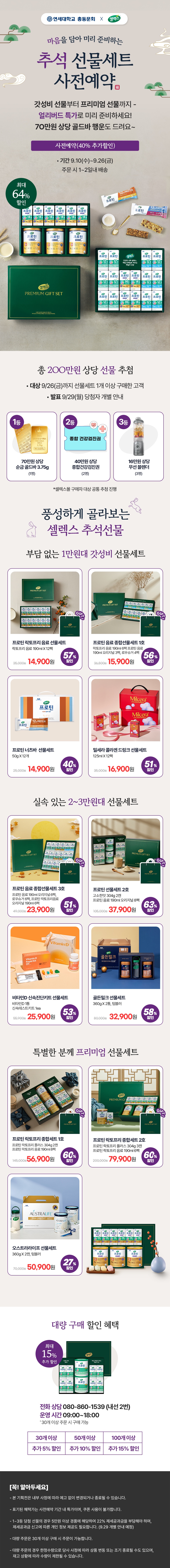 시장에서 이미 증명된 '셀렉스'의 제품력!매일이 만들어 안심할 수 있는 품질동문들을 위해 특별히 준비한 시크릿 기획전으로 저렴하면서도 품격있게올 추석 선물은 역시 '셀렉스'와 함께해보세요